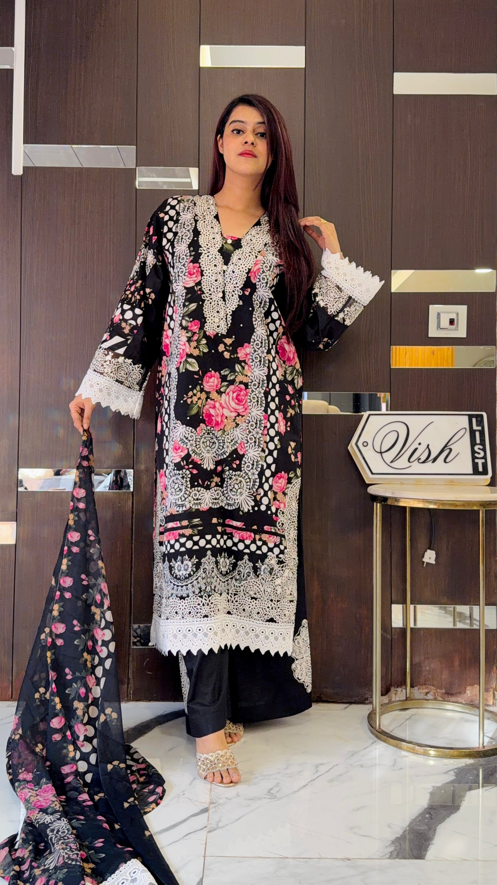 Discover effortless elegance with the Irha Pakistani Lawn Set. This ready-to-wear, fully stitched set boasts exquisite patchwork and graceful lace embellishments. Perfect for any occasion, its comfortable and chic design is sure to elevate your style.