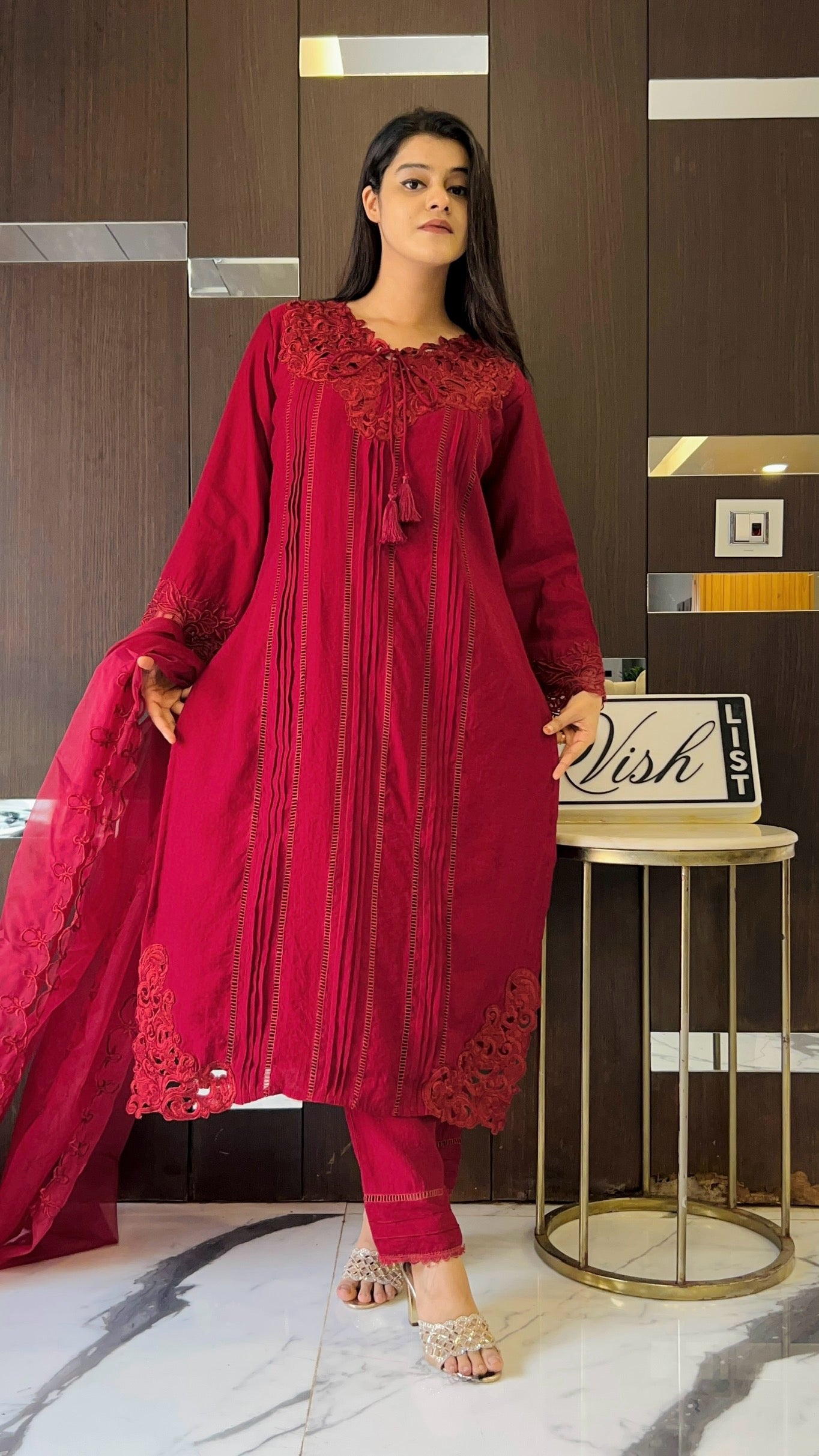 Expertly crafted for the perfect look, this Mahenoor Pakistani Formal Set is fully stitched and made of soft, luxurious soft cotton fabric. The intricate embroidery and cutwork detailing, paired with organza dupatta add a touch of elegance. Elevate your wardrobe with this stunning formal set.