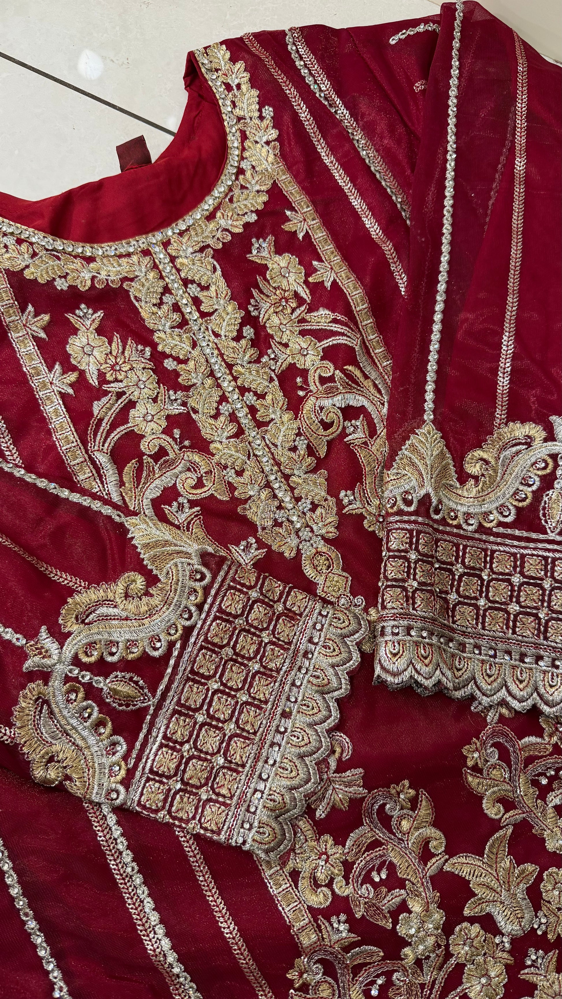 Look absolutely stunning in our Zafrah Pakistani Wedding Wear! This fully stitched, ready to wear wedding wear is adorned with intricate beadwork and made of pure organza fabric. Complete with Kurta, pant, and dupatta, this 3 piece set will make you stand out at any formal event.